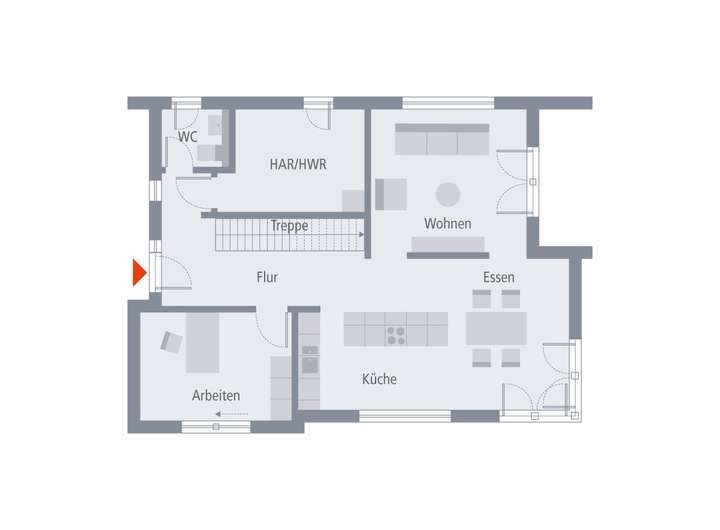 Dieser Architektenentwurf ist ein Planungsvorschlag und dient der Inspiration und Orientierung. Grundrisse, Architektur-Extras, Ausbau- und Effizienzhaus-Stufen werden individuell an Ihre Wünsche und Bedürfnisse angepasst.