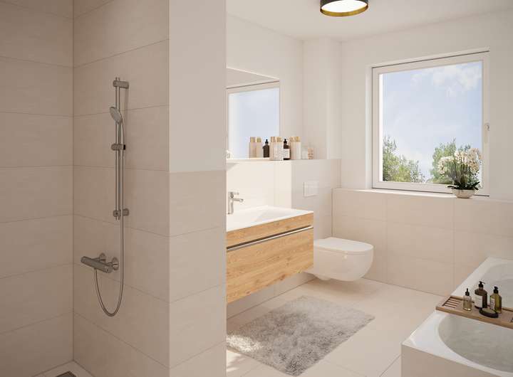 - Tageslichtbad mit Wanne und bodengleicher Dusche