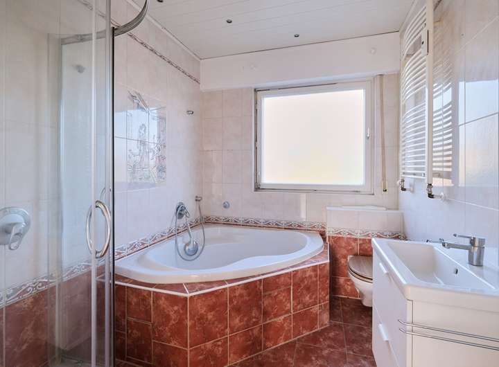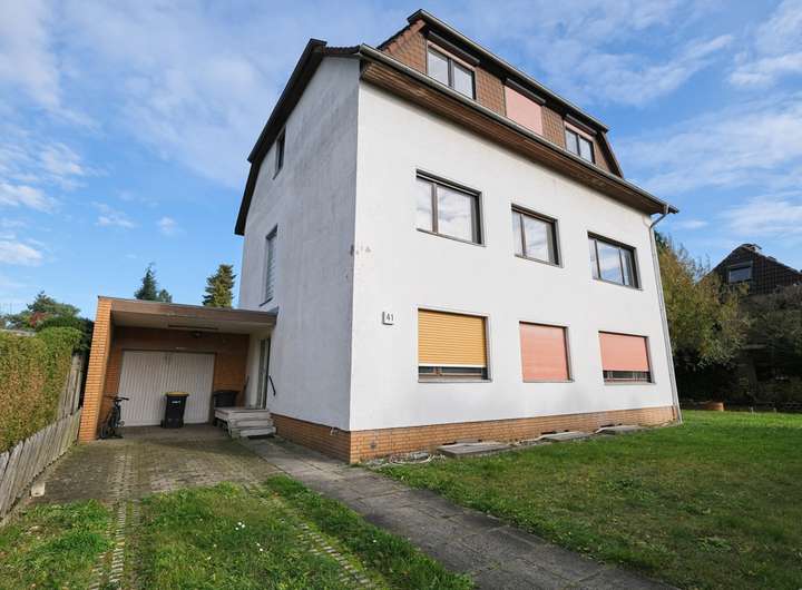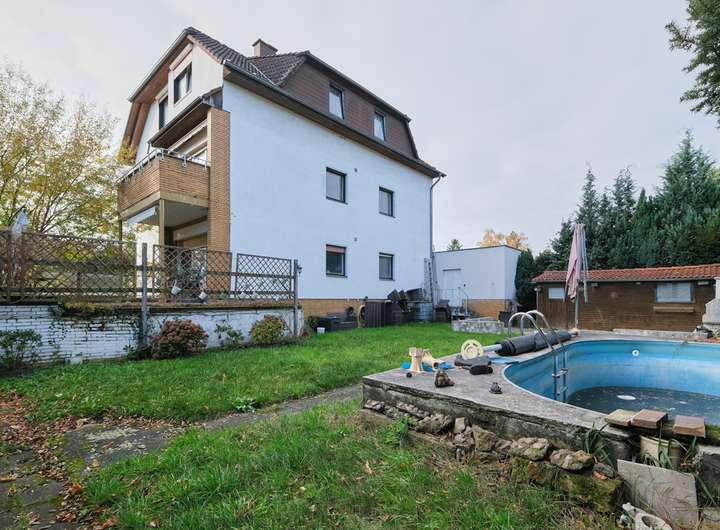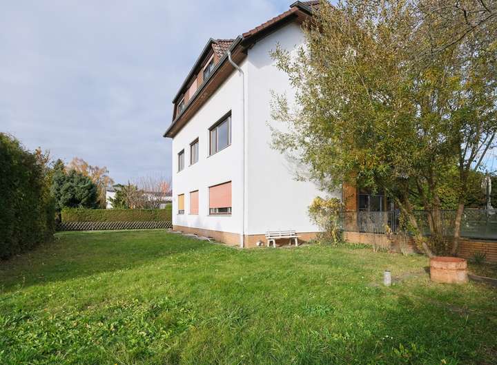 Das Haus wurde 1964 in Massivbauweise errichtet und ist voll unterkellert und besteht aus 3 Wohneinheiten. Alle Einheiten sind in etwa gleich groß und verfügen insgesamt über eine Wohnfläche von 286 m². Die Erdgeschosswohnung hat eine Terrasse, die freie Wohnung im 1. OG ein Balkon. Das Dachgeschoss wurde 1992 ausgebaut, der Spitzboden hat eine Standhöhe von ca. 2 m. Die zentrale Ölheizung ist ebenfalls von 1992.