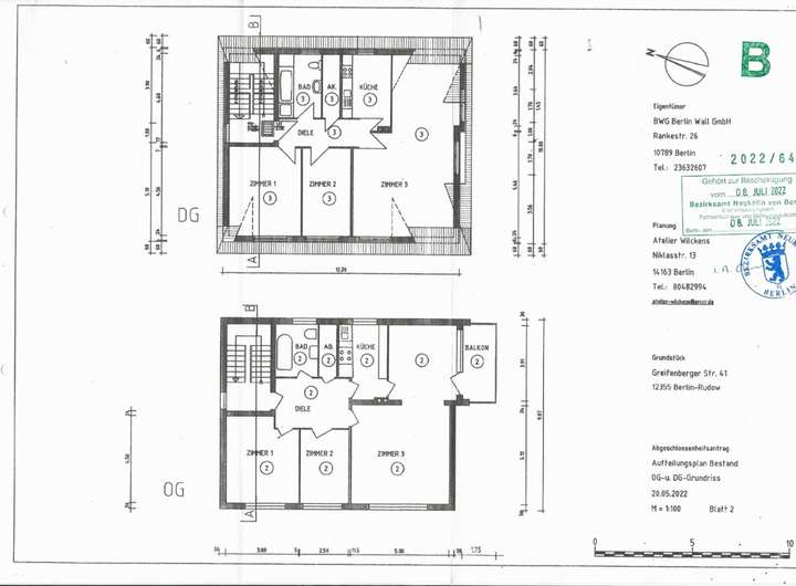 Das Objekt kann aufgeteilt werden, ein Aufteilungsplan liegt vor. Die Grundrisse sind variabel gestaltbar und können individuell angepasst werden.