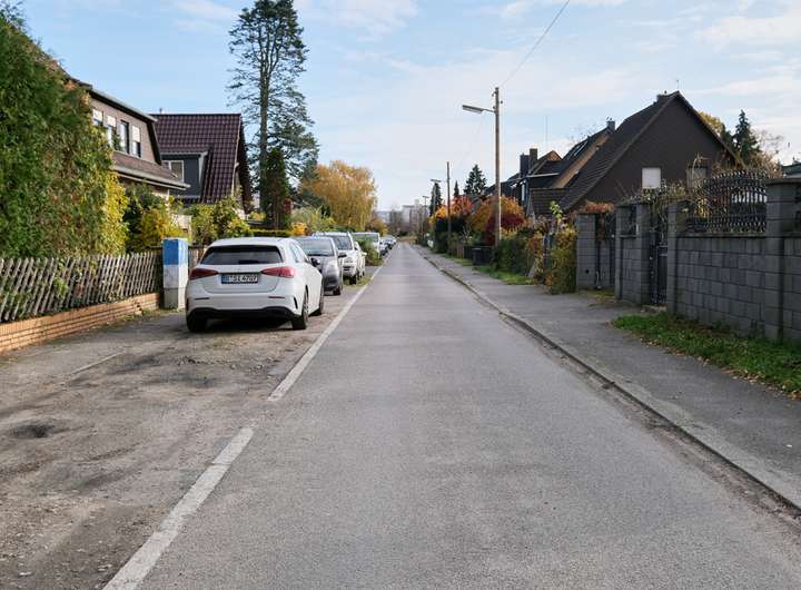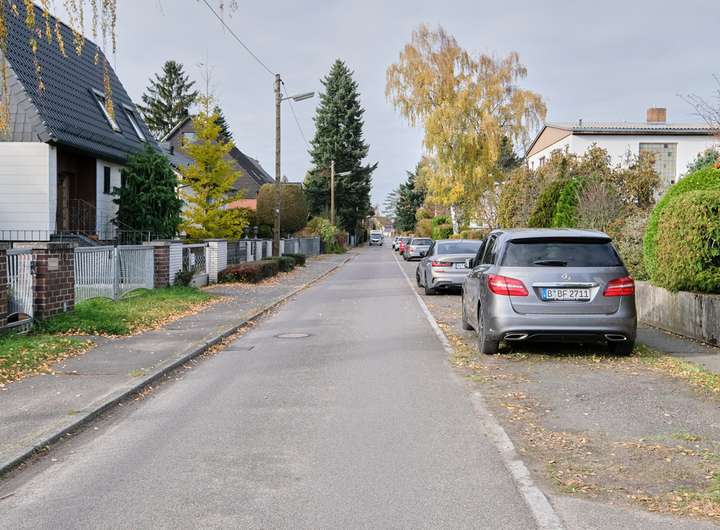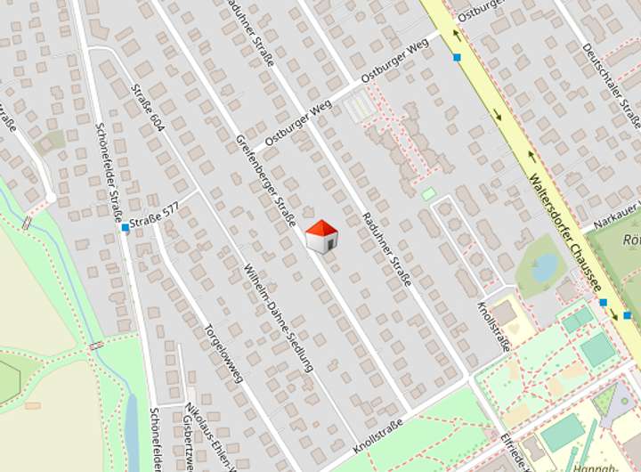 Die Greifenberger Straße grenzt an den Nordpark von Rudow, das Haus befindet sich in einer sehr ruhigen und grünen Umgebung an der Stadtgrenze Berlin / Brandenburg.