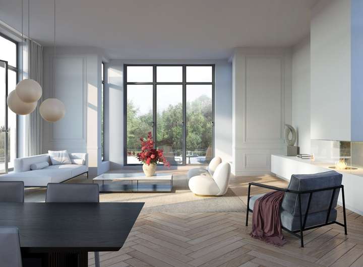 Mich als Architektin begeisterte sofort die Hanglage und Topografie des Grundstücks. Es stellte eine Herausforderung dar, die man gerne annimmt, um die Besonderheit des Ortes in der Architektur zu spiegeln. Natürlich stellt auch die Lage – der Elbhang, mit seiner gewachsenen Bebauung, dem Nebeneinander von Gebäuden aus verschiedenen Epochen – eine besondere Verantwortung dar. Um auch diesem historischen Kontext gerecht zu werden, analysierte ich zunächst die prägenden Details und Proportionen dieses Quartiers und entschied mich für einen klassischen schlanken Putzbau, der diese auf reduzierte Weise zitiert. Der Baukörper steht im Dialog zur Nachbarbebauung und fügt sich so charmant in den Straßenverlauf ein. Ich wollte einen klassisch zeitlosen Baukörper entwickeln, der mit seiner Eleganz und Klarheit dem Bauherrn einen Wert schafft, der keiner Mode unterliegt. Das Gebäude vereint die Struktur eines klassischen Gebäudes mit den Annehmlichkeiten, der baulichen Qualität und Großzügigkeit der heutigen Zeit. Durch die Anordnung der Fenster schaffen wir lichtdurchflutete Räume. Die klassischen Details und hohen Decken spiegeln die Eleganz vergangener Zeiten.