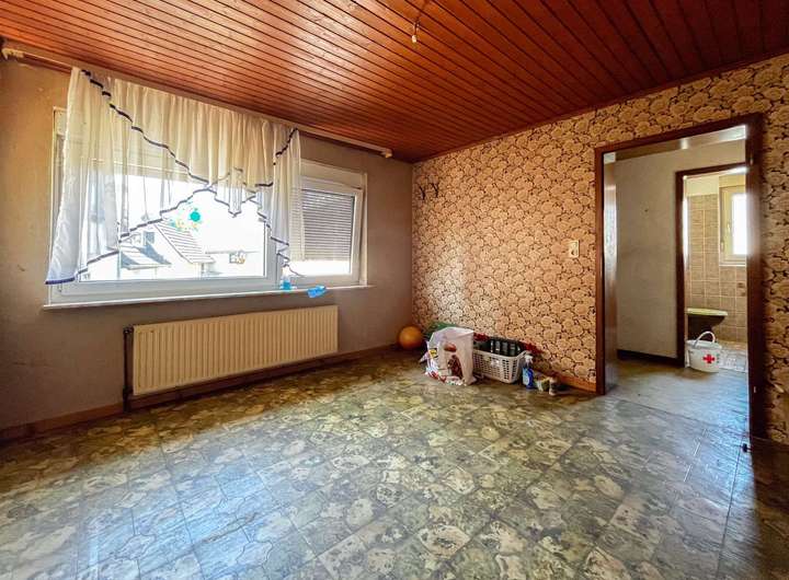 Das Haus verfügt über ein großzügiges Wohnzimmer, das sich ideal als zentraler Treffpunkt der Familie eignet. Die drei Schlafzimmer bieten ausreichend Platz für die ganze Familie oder Gäste. Die Küche ist separat und bietet genügend Raum für eine moderne Einbauküche nach Ihren Vorstellungen. Das Badezimmer sowie das Gäste-WC sind ebenfalls renovierungsbedürftig und bieten viel Potential für eine moderne Gestaltung.