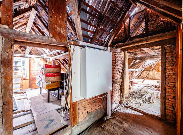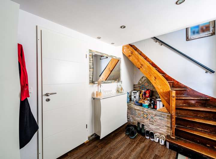 Das Wohnhaus erstreckt sich über zwei Etagen und verfügt über eine Wohnfläche von ca. 112 m². Das Dachgeschoss bietet viel Potenzial für einen Ausbau – ob als Atelier, Büro oder zusätzliche Schlafräume.