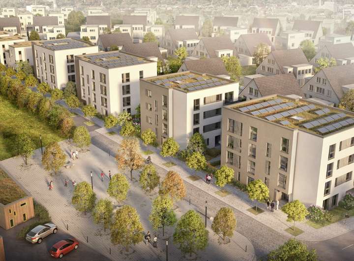 Von der kompakt geschnittenen Single-Wohnung mit 40 m² bis zur großzügigen Doppelhaushälfte mit 162 m² Wohnfläche – Sie entscheiden, welches Zuhause am besten zu Ihrem persönlichen Lebensentwurf passt. Individuelle Auswahlmöglichkeiten und verschiedene Grundrisstypen ermöglichen ein Wohnen ganz nach Ihren Bedürfnissen. Die Balkone und Gärten der Mehrfamilienhäuser liegen überwiegend in Südausrichtung. In den Außenanlagen der Mehrfamilienhäuser wird es neben Grünflächen auch zwei Kleinkindspielflächen mit ausreichend Sitzmöglichkeiten geben. Alle Dächer werden extensiv begrünt, was für ein angenehmes Außenklima sorgt. Darüber werden die Dächer der Mehrfamilienhäuser mit Photovoltaik-Anlagen ausgestattet. Für die Bewohner der Eigentumswohnungen steht eine gemeinschaftliche Tiefgarage zur Verfügung.