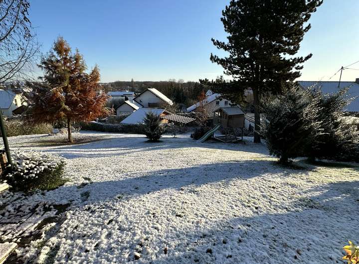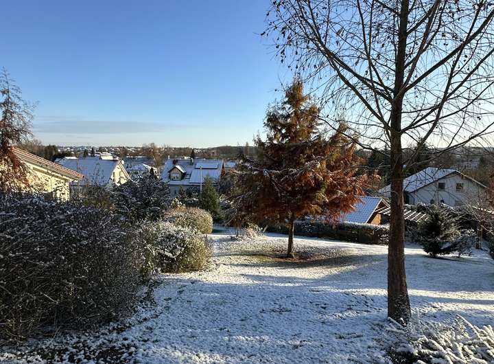 Dank der Hanglage und der Ost-Ausrichtung genießen Sie eine traumhafte Aussicht. Die Umgebung ist geprägt von Grünflächen und einer angenehmen Nachbarschaft, die Privatsphäre und Erholung bietet.