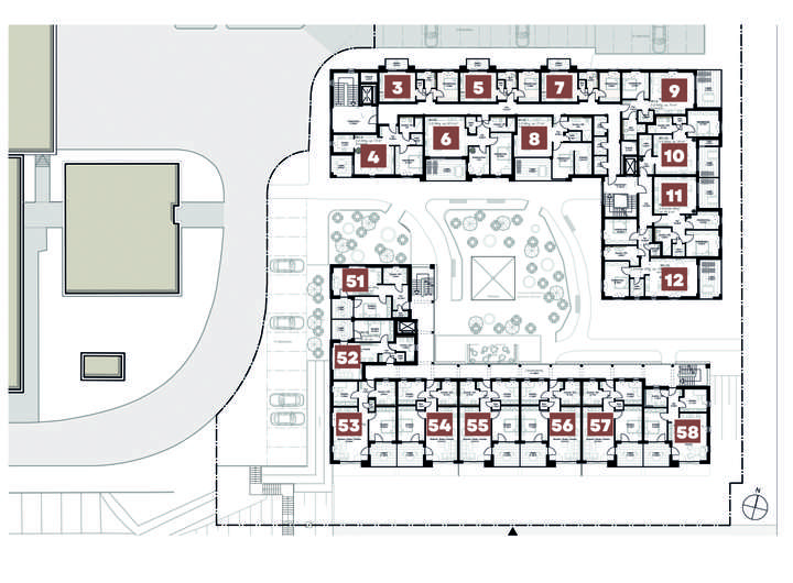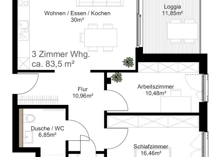 Die Wohnungen haben eine Größe von ca. 44 bis ca. 107 Quadratmeter und können auf Grund unserer modularer Plankonzeption bei großem Platzbedarf je nach Lebenssituation zusammengelegt und wieder geteilt werden. Mit dem geräumigen Veranstaltungsraum im Erdgeschoss und dem begrünten Innenhof sind Kommunikationsplätze als Begegnungsstätten vorgesehen. Als energiesparende und sinnvolle Maßnahme haben wir zusätzlich von den Stadtwerken Bretten eine Nahwärmeversorgung auf dieses Areal verlegen lassen. Zum Abstellen von Fahrzeugen stehen die Tiefgarage mit breiten Stellplätzen und Außenstellplätze zur Verfügung. Ein großer Fahrradabstellraum ist ebenfalls geplant. Auch ist die Bushaltestelle „gleich hinter dem Haus“ sowie die Stadtbahn-Haltestellen „Rechberg“ und „Stadtmitte“ fußläufig zu erreichen.