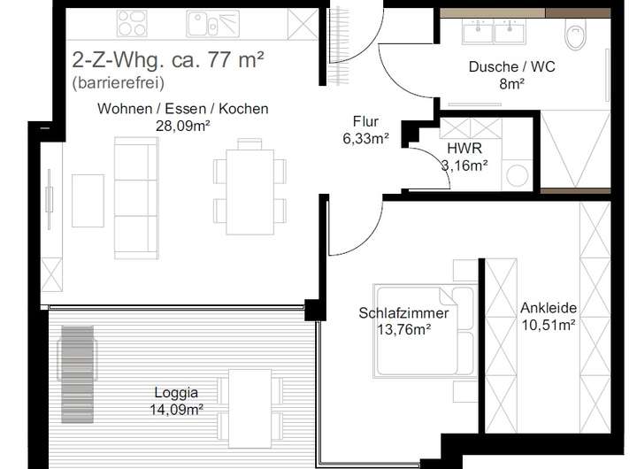 Die Wohnungen haben eine Größe von ca. 44 bis ca. 107 Quadratmeter und können auf Grund unserer modularer Plankonzeption bei großem Platzbedarf je nach Lebenssituation zusammengelegt und wieder geteilt werden. Mit dem geräumigen Veranstaltungsraum im Erdgeschoss und dem begrünten Innenhof sind Kommunikationsplätze als Begegnungsstätten vorgesehen. Als energiesparende und sinnvolle Maßnahme haben wir zusätzlich von den Stadtwerken Bretten eine Nahwärmeversorgung auf dieses Areal verlegen lassen. Zum Abstellen von Fahrzeugen stehen die Tiefgarage mit breiten Stellplätzen und Außenstellplätze zur Verfügung. Ein großer Fahrradabstellraum ist ebenfalls geplant. Auch ist die Bushaltestelle „gleich hinter dem Haus“ sowie die Stadtbahn-Haltestellen „Rechberg“ und „Stadtmitte“ fußläufig zu erreichen.