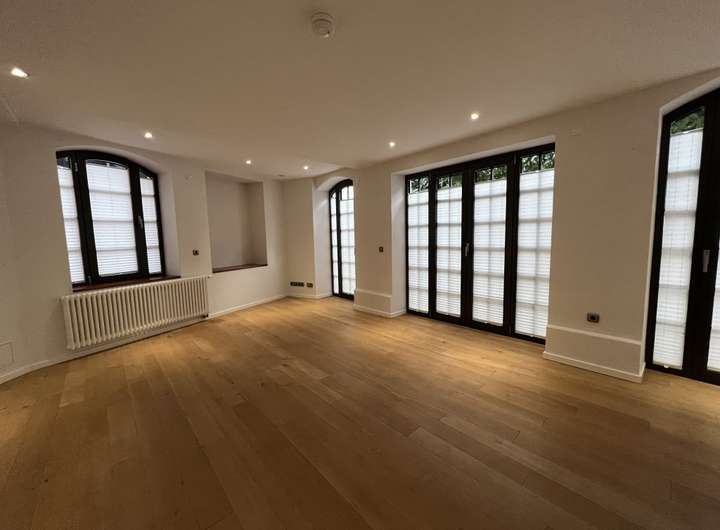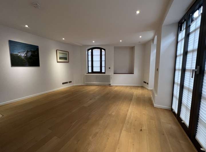 Sie betreten Ihr neues Zuhause über eine kleine Diele. Das Herzstück dieses Apartments ist definitiv das großzügige Wohnzimmer. Bodentiefe Fenster garantieren viel Tageslicht. Ein weiteres Highlight? Eindeutig der frei stehende Ofen! Dieser sieht nicht nur schick aus, sondern vermittelt auch Wärme und ein behagliches Wohngefühl. Was gibt es Schöneres, als hier den Abend mit der Lieblingslektüre und einem guten Glas Wein ausklingen zu lassen? Integrierte Deckenspots vermitteln ein Galerie-artiges Wohngefühl.