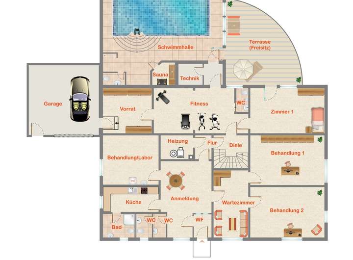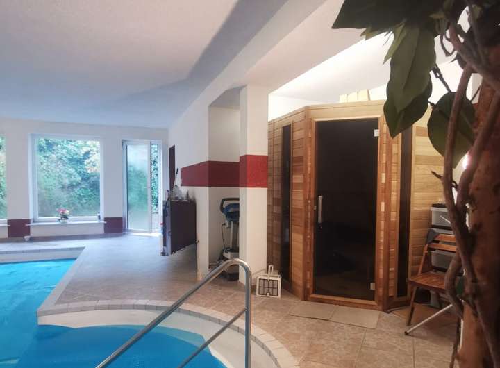 Diese exklusive Immobilie überzeugt durch eine Vielzahl an hochwertigen Ausstattungsmerkmalen, die sowohl Komfort als auch Funktionalität bieten. Für die umfangreichen Details wird ihnen gerne ein weiteres Dossier zur Verfügung gestellt. Nichts kann bei einem solchen Anwesen einen persönlichen Blick bei einer Besichtigung ersetzen. Das seniorengerechte Haus ist mit einem Plattformlift ausgestattet, der bequem von der Unter- bis zur Dachgeschoss-Etage genutzt werden kann. Für Gäste stehen mehrere separate WCs zur Verfügung, was den Wohnkomfort zusätzlich erhöht. Die moderne Einbauküche lädt zum Kochen und Verweilen ein, während die großzügige Terrasse, mit teilweiser Überdachung, sowie der Balkon und der Freisitz direkt unter dem Dach, ideale Rückzugsorte an der frischen Luft sind. Die Möglichkeit zur Gartennutzung wird Gartenliebhaber begeistern. Die gewählten Bodenbeläge verleihen dem Wohnbereich eine stilvolle und zugleich pflegeleichte Note. Für Unterhaltung sorgt die perfekte Nutzung von Breitbandkabel, DSL und Kabel-Sat-TV-Anschluss. Parkmöglichkeiten sind in Hülle und Fülle vorhanden: Neben einer geräumigen Garage stehen auch zusätzliche Stellplätze im Freien zur Verfügung. Das Haus verfügt über ein komplettes lichtdurchflutetes Untergeschoss. Es bietet neben den aktuell genutzten Gewerberäumen weiteren Stauraum. Die Immobilie ist mit einem energieeffizienten Gasbrennwertkessel, großzügiger Solarthermie - Anlage und teilweise Fußbodenheizung, ausgestattet. Für zusätzliche Energieeffizienz sorgt ein Heizwasserspeicher mit einer Kapazität von 1000 Litern für die Nutzung der Solarenergie. Ein 250-Liter-Warmwasserbereiter stellt jederzeit ausreichend Brauchwasser zur Verfügung. Zusätzlich ist das Gebäude mit einer Blitzableiteranlage gesichert. Eingebaut ist eine Klimaanlage der Marke Panasonic. Diese Anlage dient in Teilen des Erdgeschoss und Dachgeschoss der Erzeugung und Aufrechterhaltung einer angenehmen Raumluft -Qualität. Für Wellnessfreunde steht ein Schwimmbad und eine Sauna mit zusätzlichem Infrarotlicht zur Verfügung, die für erholsame Stunden sorgt. Entdecken Sie eine Immobilie, die mit ihrer hochwertigen Ausstattung und durchdachten Details überzeugt – perfekt für alle, die ein komfortables und sorgenfreies Wohnen schätzen. Neugierig und Lust auf eine Besichtigung? - Fordern Sie das Exposé an### - Bonitätscheck ist Grundlage für eine Besichtigung### - Tiefgreifende Unterlagen gibt es nach Gegenzeichnung der Maklervereinbarung. ### Einfach melden##