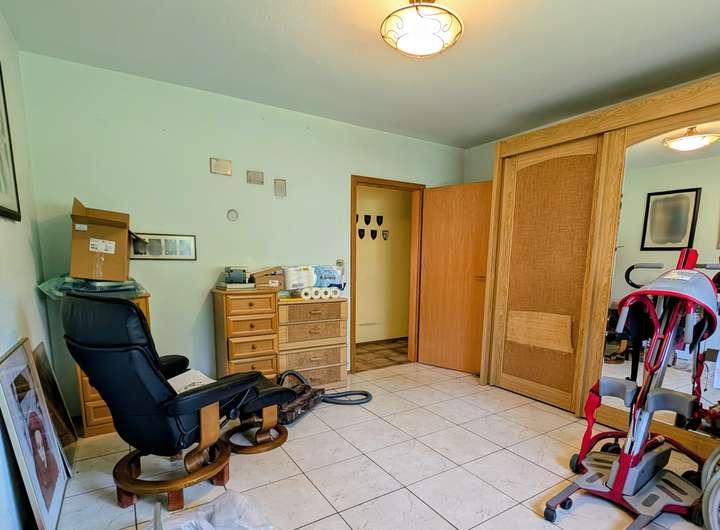 Das Wohnzimmer grenzt direkt an den Wintergarten und bietet genug Platz für Sofalandschaften, Spieleabende oder Netflix-Marathons. Über einen separaten Flur erreicht man den privaten Bereich mit Schlafzimmer, Kinderzimmer und einem geräumigen Badezimmer. Ein weiteres Zimmer – z. B. fürs Homeoffice oder Gäste – liegt direkt neben der Diele.