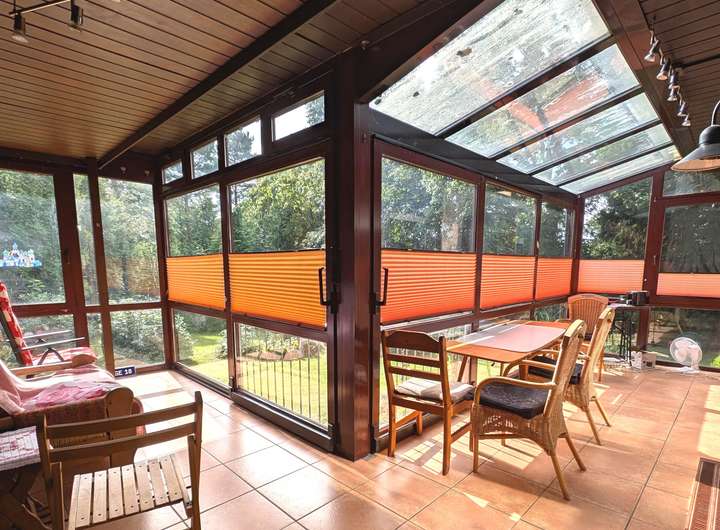 Schon beim Reinkommen merkt man: Hier ist alles auf Großzügigkeit und Offenheit ausgelegt. Nach dem praktischen Windfang samt Gäste-WC geht’s weiter in die zentrale Diele – Treffpunkt, Dreh- und Angelpunkt für das Leben im Haus. Die offene Küche und der Wintergarten (früher mal ein Balkon) bilden eine luftige Einheit. Frühstück mit Blick ins Grüne? Kein Problem.