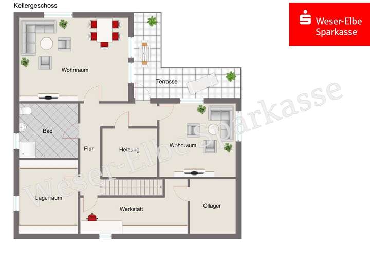 Und dann: der Keller. Voll unterkellert, mit über 2,50 m Deckenhöhe (!) und eigenem Zugang zur Terrasse. Hier könnte locker noch eine Einliegerwohnung, ein Atelier, ein Fitnessraum oder das Tonstudio entstehen. Und Platz zum Lagern oder für die heimisch Werkstatt gibt´s auch noch.