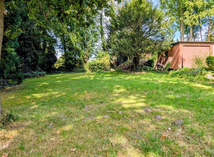 Draußen geht’s grün weiter: Ein parkähnlicher Garten, gepflegt, großzügig und voller Möglichkeiten. Dazu eine Doppelgarage, die nicht nur deine Autos schützt, sondern auch deine Zweiräder.