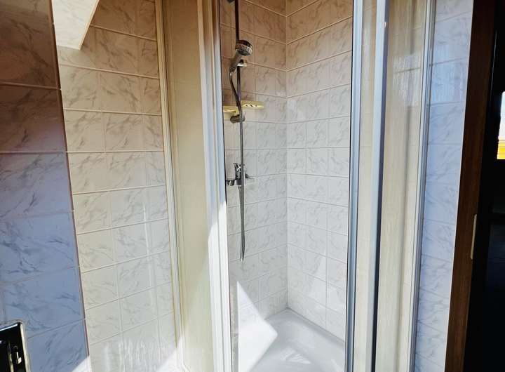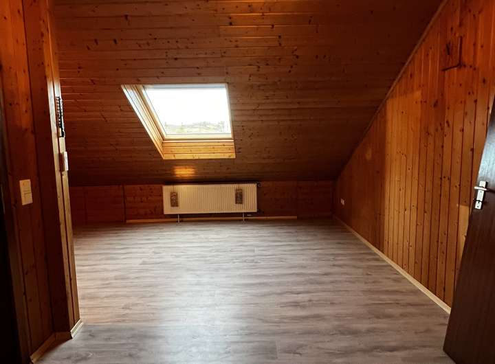 Das DG ist ausgebaut und verfügt über ein Zimmer mit Schräge und eigenem Bad mit Dusche.