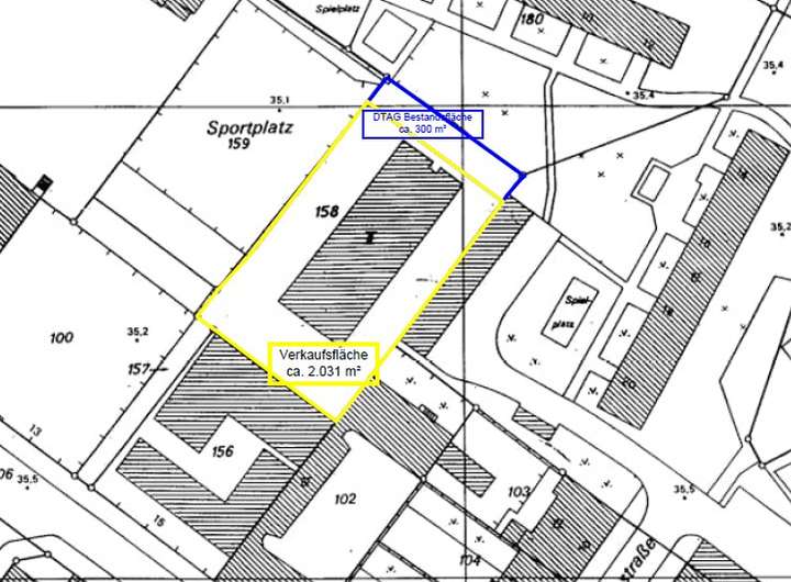 Zum Verkauf steht eine Grundstücksteilfläche von ca. 2.031m² mit einem nicht unterkellertem Technikgebäude (Baujahr 1995) mit gemeinschaftlicher Zuwegung. Für das Verkaufsobjekt besteht ein Geh- und Fahrrecht.