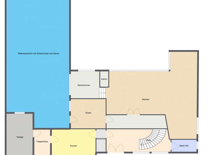 Die Großzügigkeit dieser Villa in dieser einmaligen Lage wird durch die vielseitige Grundrissgestaltung unterstrichen. 9 Zimmer, davon 4-5 Schlafräume, 3 Bäder, Gäste-WC und Küche, sowie ein Schwimmbad mit Sauna und ein separates Teehaus