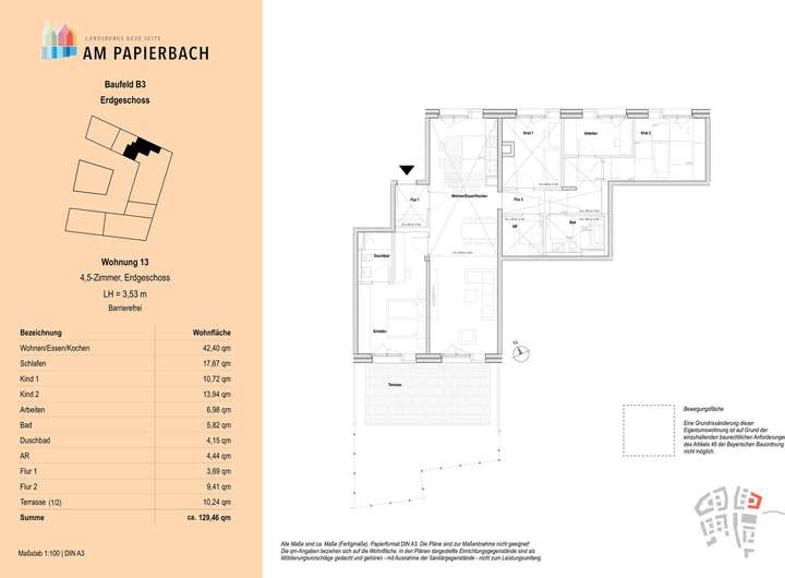 Als eines von zwei Wohngebäuden "Am Papierbach" bietet der neue Bauabschnitt exklusive Blicke über den Lech bis in die Altstadt. Durch die prominente Lage erreichen Sie über den Lady-Herkomer-Steg in wenigen Minuten die Landsberger Altstadt oder das Zentrum des Quartiers.