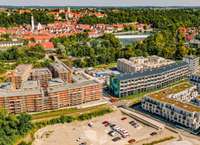 - 75 % weniger CO2 im Vergleich zu Gas- und Ölheizungen: Die Energieversorgung des Quartiers erfolgt durch Wärmerückgewinnung mittels einer Grundwasser-Wärmepumpe. Diese nutzt die thermische Energie im Grundwasser und ist durch die dortigen, gleichbleibenden Temperaturen ganzjährig besonders effizient. Das schont nicht nur die Umwelt, sondern auch Ihr Portemonnaie.