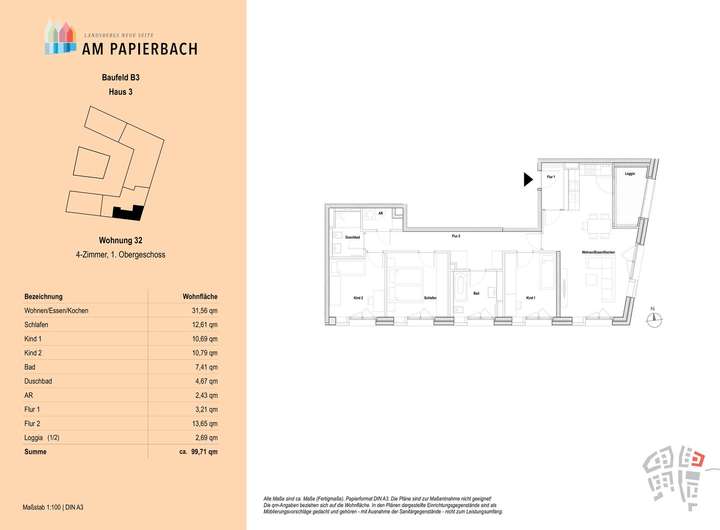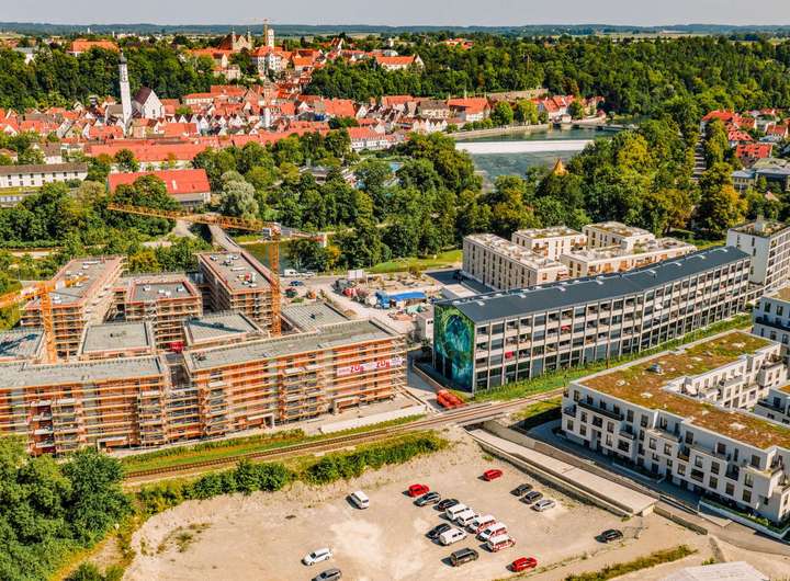 Als eines von zwei Wohngebäuden "Am Papierbach" bietet der neue Bauabschnitt exklusive Blicke über den Lech bis in die Altstadt. Durch die prominente Lage erreichen Sie über den Lady-Herkomer-Steg in wenigen Minuten die Landsberger Altstadt oder das Zentrum des Quartiers.