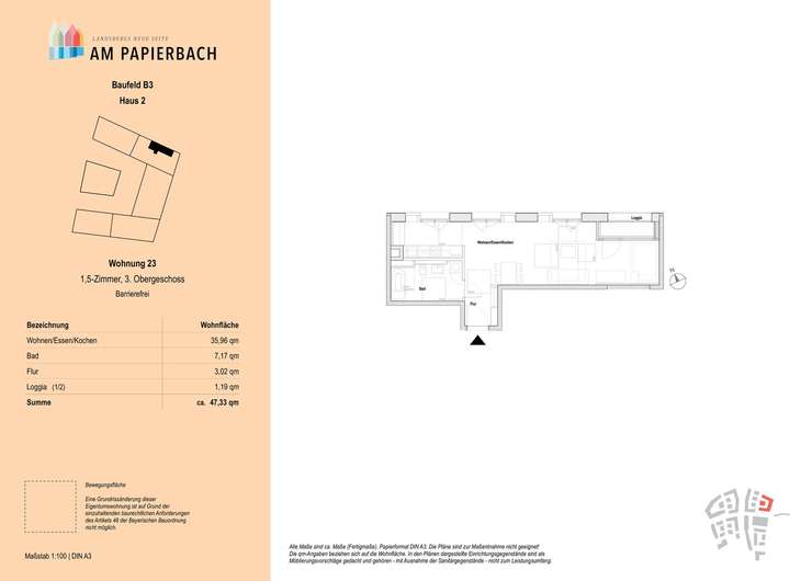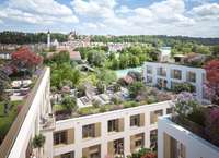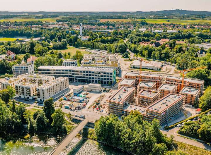 Als eines von zwei Wohngebäuden "Am Papierbach" bietet der neue Bauabschnitt exklusive Blicke über den Lech bis in die Altstadt. Durch die prominente Lage erreichen Sie über den Lady-Herkomer-Steg in wenigen Minuten die Landsberger Altstadt oder das Zentrum des Quartiers.
