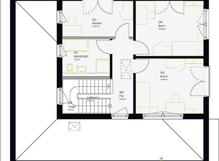 Individuelles Wohnen auf einer Nettogrundfläche ab ca. 174 m²! Unser spannendes LifeStyle 17 bietet dafür nicht nur die passende, attraktive Außenansicht, sondern auch einen - unter Einbezug der schönen Freiterrasse - nahezu quadratischen Grundriss. Und damit die ideale Voraussetzung für eine flexible Raumorganisation, die sich optimal an persönlichen Vorstellungen und Gegebenheiten orientieren kann. So kann beispielsweise das großzügige Elternzimmer mit separatem Bad und WC sowie direktem Zugang zur Außenterrasse auch einmal im Erdgeschoss untergebracht werden.