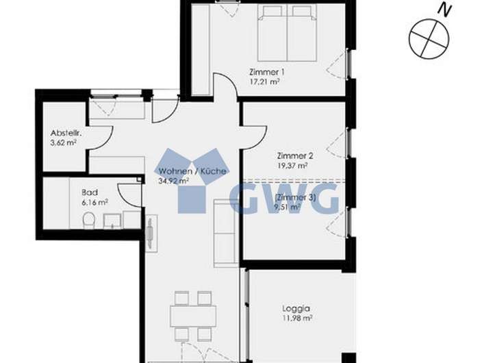 Sie selbst können aktuell noch entscheiden, ob Sie die Wohnung als 3-Zimmer oder 4-Zimmer-Wohnung nutzen möchten.