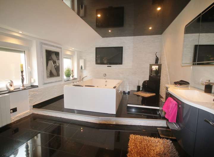 4 moderne Bäder, 1 Bad mit Wellnessbereich und Sauna