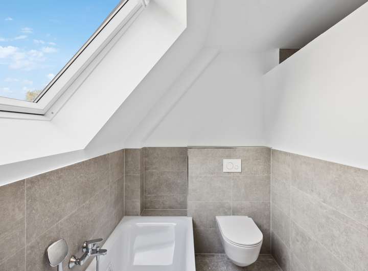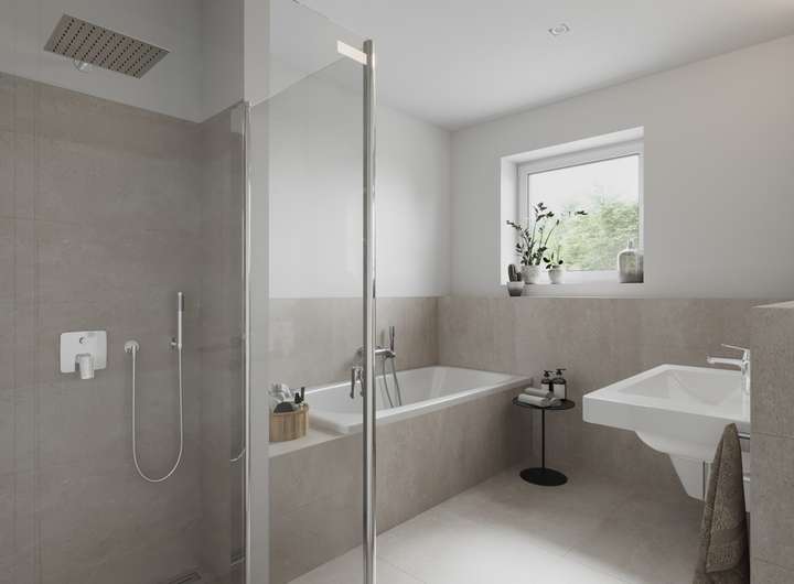 - Moderne großformatige Fliesen in den Badezimmern