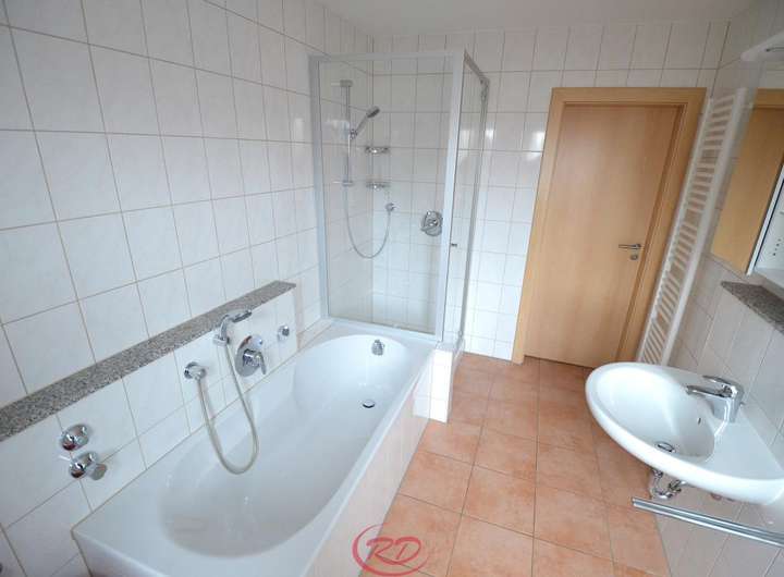 Das Schlafzimmer ist mit edlem Eichenparkett ausgestattet und verleiht dem Raum eine warme und behagliche Atmosphäre. Der Wohnbereich sowie alle weiteren Räume sind komplett gefliest und daher besonders pflegeleicht. Das Tageslichtbad bietet mit einer Badewanne, einer separaten Dusche, einem Waschmaschinenanschluss und einem Fenster modernen Komfort. Ein praktischer Abstellraum innerhalb der Wohnung ergänzt das Angebot an Stauraum.