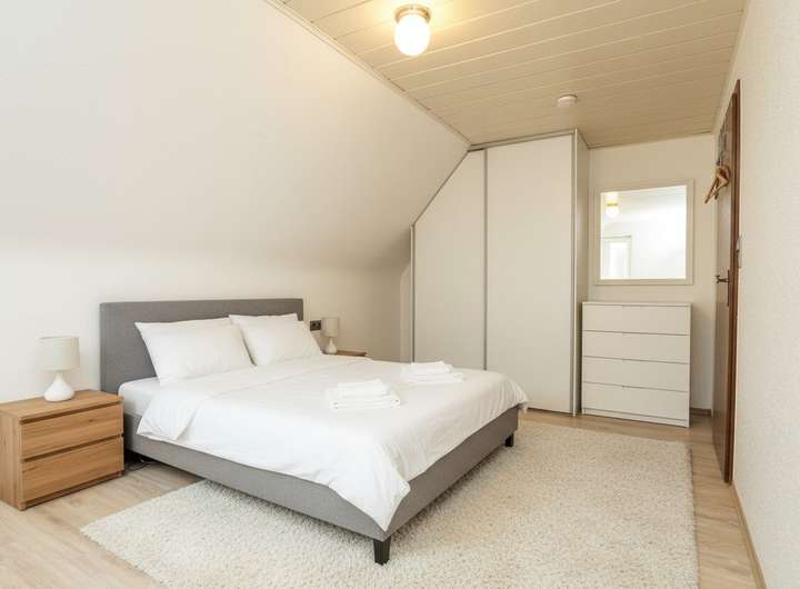 Im Obergeschoss finden sich zwei Schlafzimmer mit vielseitigen Nutzungsmöglichkeiten - als Hauptschlafzimmer, Kinderzimmer oder Home-Office. Ein separates WC ergänzt diese Etage.