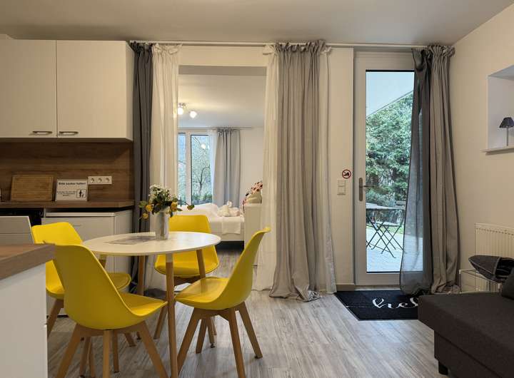 Exklusive 2 Zimmer Wohnung mit Terrasse, hochwertig ausgestattet und komplett möbliert.