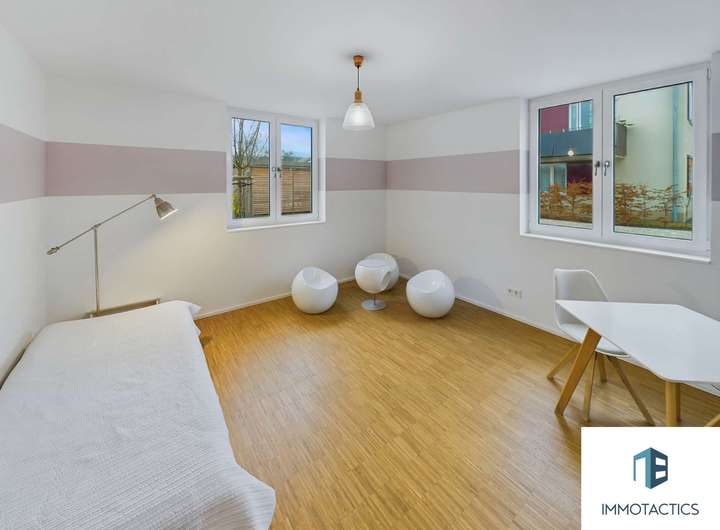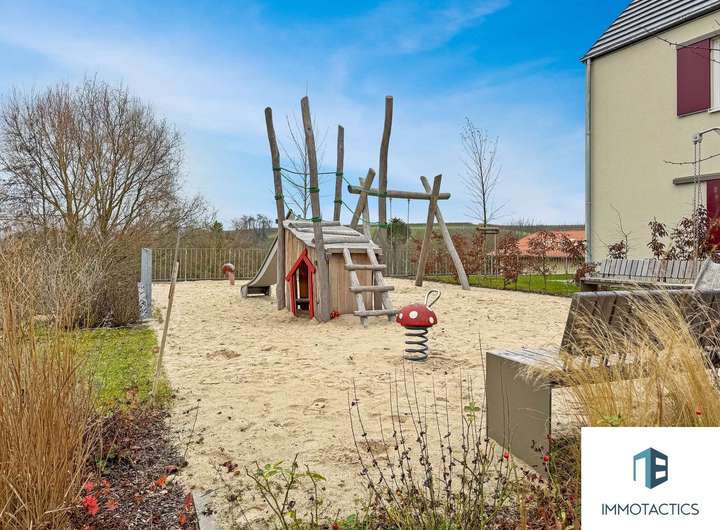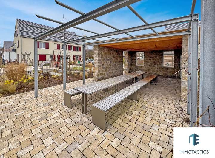 Die Gemeinde garantiert Eltern einen Kitaplatz. Die Immobilie liegt fußläufig sowohl zur nächsten Haltestelle des