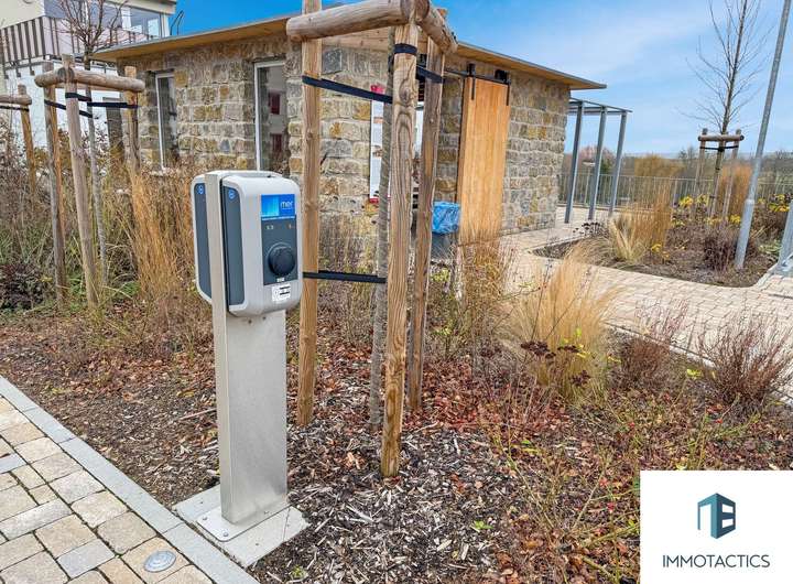 Diese Wohnung ist ein Vorreiter in Sachen umweltfreundlichem Wohnen. Das Blockheizkraftwerk liefert nachhaltige Energie, und die Wohnhöfe sind mit E-Tankstellen sowie einem innovativen Car-Sharing-System mit Elektroautos ausgestattet.