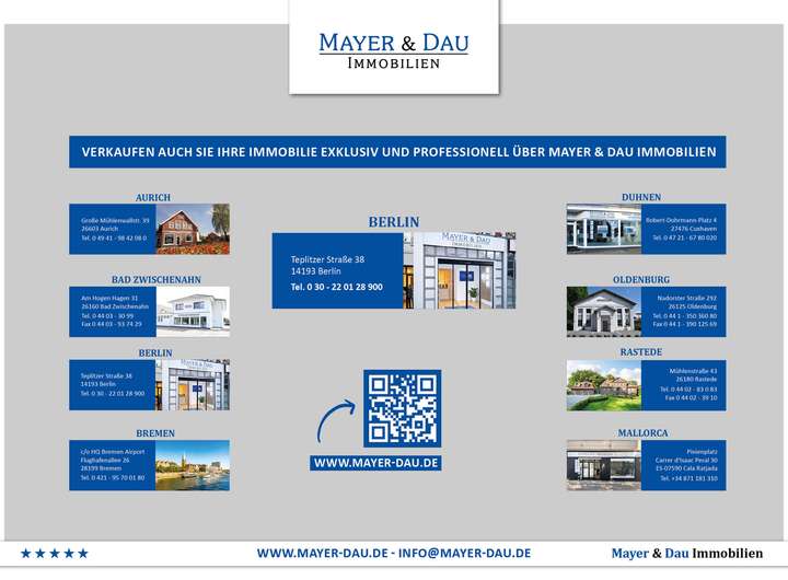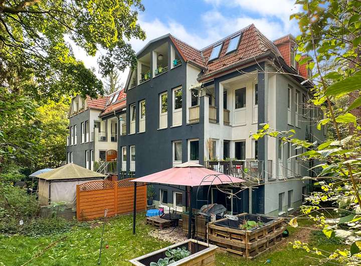Bei der Liegenschaft handelt es sich um ein freistehendes, voll unterkellertes Mehrfamilienhaus mit 8 Wohneinheiten, Baujahr 1994. Die Wohnungsgrößen variieren zwischen 88 m² und 112 m² und verteilen sich auf das Souterrain, das Erdgeschoss, ein Vollgeschoss, sowie ein Dachgeschoss, verbunden durch ein gepflegtes Treppenhaus. Die Erdgeschoss- Wohnungen sind mit Terrassen ausgestattet. Die Wohneinheiten im 1. Obergeschoss und im Dachgeschoss verfügen über einen Balkon. Vier Maisonette Wohnungen erstrecken sich über das Erdgeschoss und das Souterrain. Im Souterrain sind zudem ein Raum für Fahrräder, Mieter- Keller, sowie die Haustechnik untergebracht. Das 1.468 m² große gepflegte Grundstück weist einen vielfältigen Baum- und Grünbestand auf. Die monatliche Nettomieteinnahme beträgt 7.740,24 €. Die durchschnittliche Monatsmiete liegt derzeit bei 12,61 €/m².