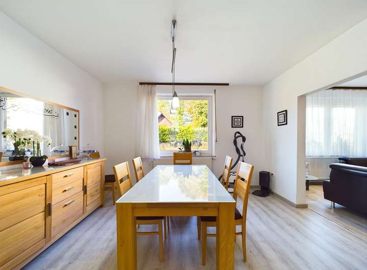 Das Einfamilienhaus, ursprünglich 1913 errichtet, wurde über die Jahre durch Um- und Anbauten erweitert und bietet inzwischen ca. 210,70 m² Wohnfläche. Diese erstreckt sich über zwei Etagen. Ein zusätzlicher Spitzboden und einen Teilkeller stehen zur Verfügung. Dank fortlaufender Renovierungsarbeiten, einschließlich einer neuen Heizungsanlage und Dachdämmung, präsentiert sich das Haus in einem gepflegten Zustand.