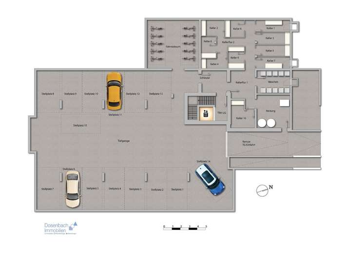 Sie umfasst ein modernes Mehrfamilienhaus mit insgesamt 10 Wohneinheiten und 14 PKW-Tiefgaragen-Stellplätzen.