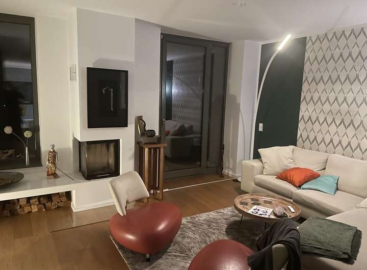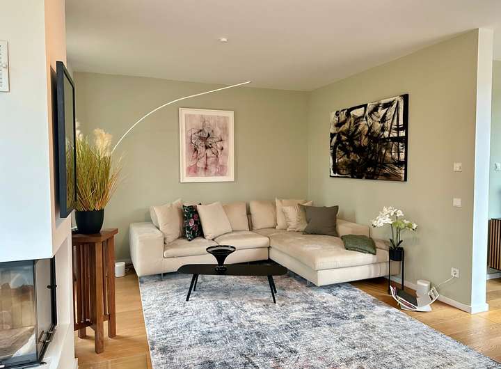 Diese stilvolle, komplett möblierte Haushälfte bietet Wohnen auf hohem Niveau, ruhig gelegen und eingebettet in viel Grün. Der große private Garten mit Blick auf einen liebevoll angelegten Teich ist ein idealer Ort zum Abschalten und Genießen. Ob entspannte Sommerabende am Gas-BBQ oder gemütliche Wintertage vor dem Kamin – hier fühlt man sich sofort zuhause.