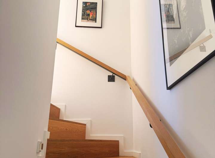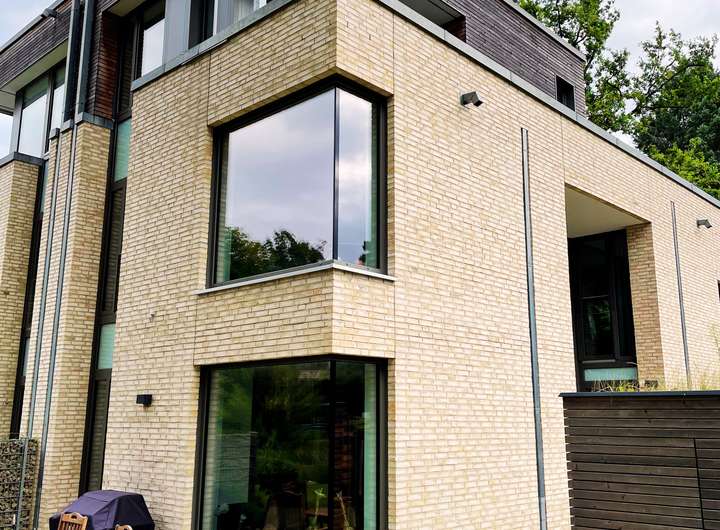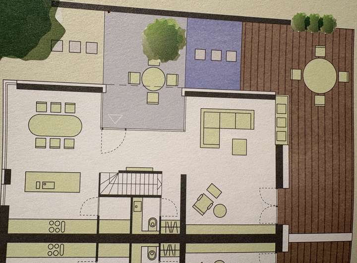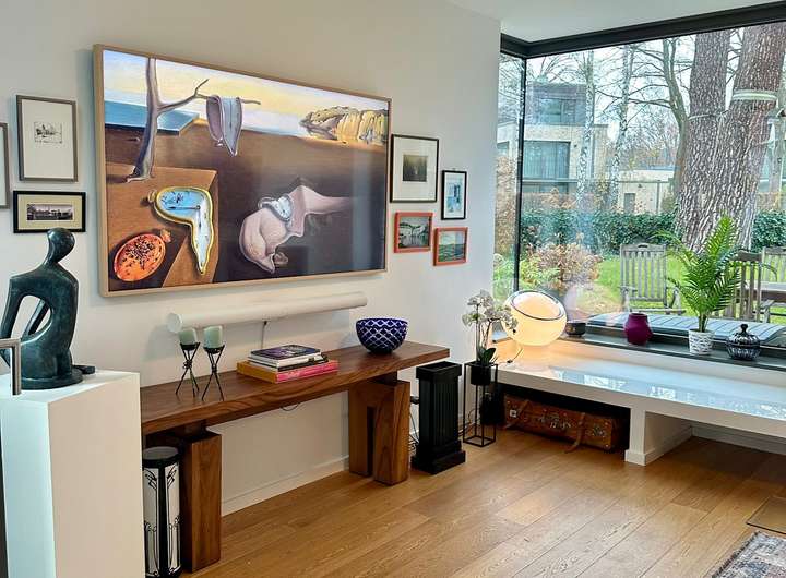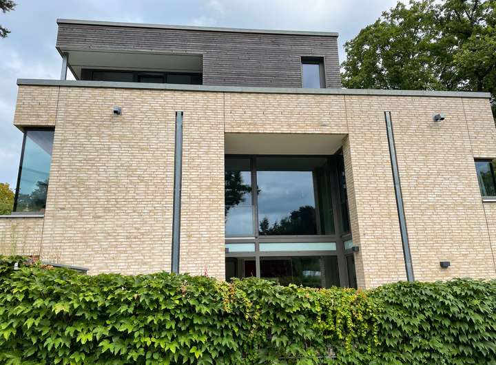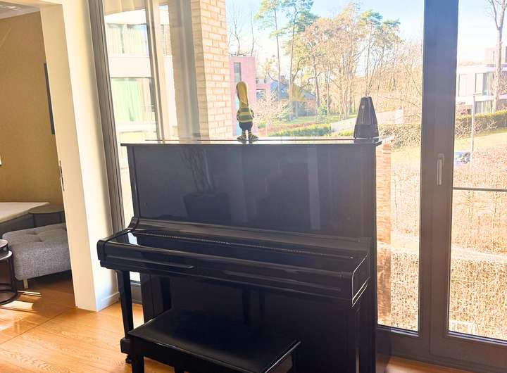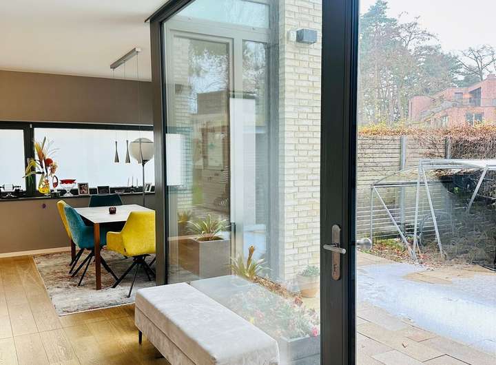 Im Erdgeschoss verbindet ein offenes Atrium den Wohn- und Essbereich und verleiht dem Haus eine freundliche, luftige Atmosphäre. Ein zweites Atrium im Mittelgeschoss setzt mit einem hochwertigen Piano einen besonderen Akzent. Edle Parkettböden, Fußbodenheizung und große Fenster sorgen für viel Licht und eine angenehme Wohnqualität.