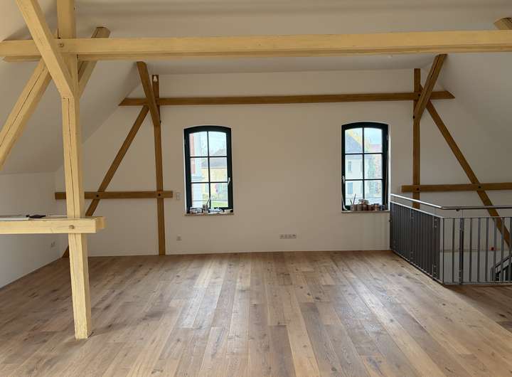 Die angebotene Immobilie verfügt über ein Erdgeschoss, ein Obergeschoss sowie über einen kleinen ausgebauten Dachboden. Dieses Stadthaus hat im Erdgeschoß, dem ehemaligen Pferdestall, die runden Deckengewölbe - sogenannte Preußische Kappe - bewahrt und somit eine einzigartige Wohnkultur erhalten. Im Obergeschoss ist das Dachständerwerk so weit als möglich frei geblieben, so dass ein freier lichtdurchfluteter Wohnraum umgesetzt wurde. Dieser offene Grundriss, sowie die zum Teil bodentiefen Balkontüren als auch Echtholz-Sprossenfenster, sorgen für einen einzigartigen Charakter des Hauses. Die große Wohnküche im Erdgeschoss unterstreicht dieses Wohngefühl. Die Bäder in jeder Wohnebene mit bodentiefer Dusche und Handtuchheizkörper, sowie separatem Gäste-WC, vollflächig verbauter Fußbodenheizung und umfangreiche verbauter Netzwerk- und Sat-Anlagenverkabelung bilden ein Kleinod für Familien oder Menschen, die das Besondere und dennoch Praktische suchen: Wohnen in ruhiger Lage, leben und arbeiten in historischen Räumen und dennoch moderner Wohnkultur. Zum Mietobjekt gehört ein Außenstellplatz und die gemeinschaftliche Nutzung des liebevoll anlegten, begrünten Innenhof, was Ihnen zusätzlichen Komfort bietet.
