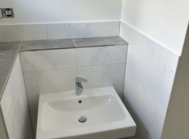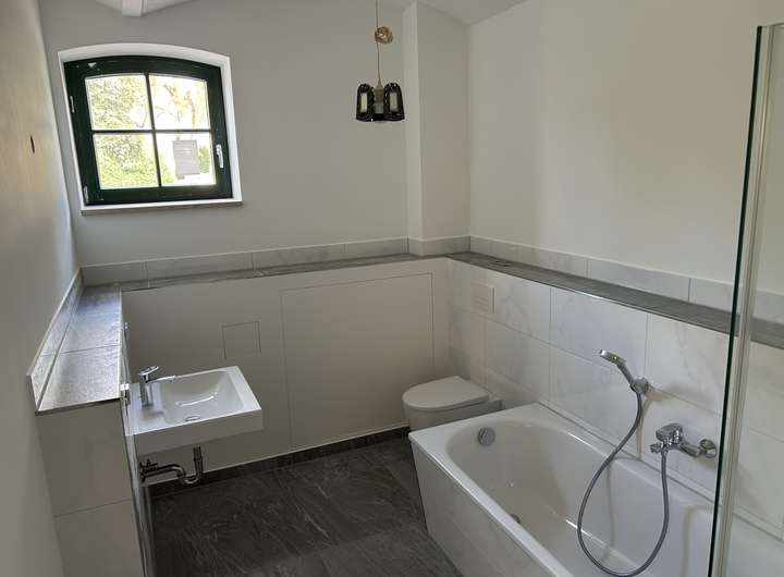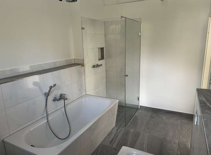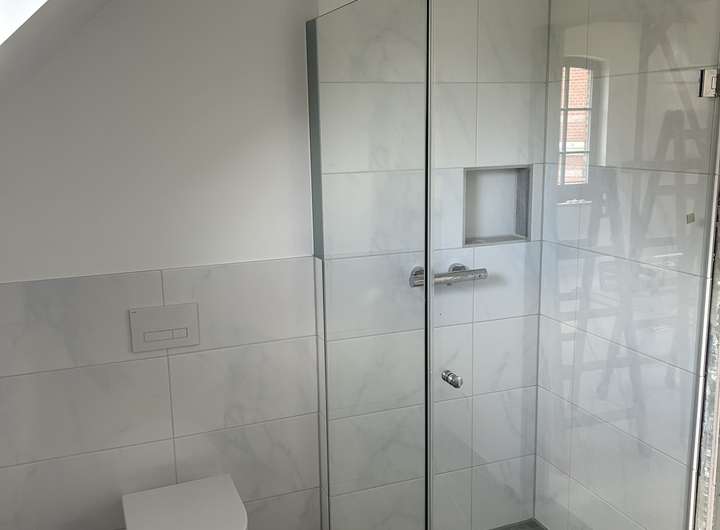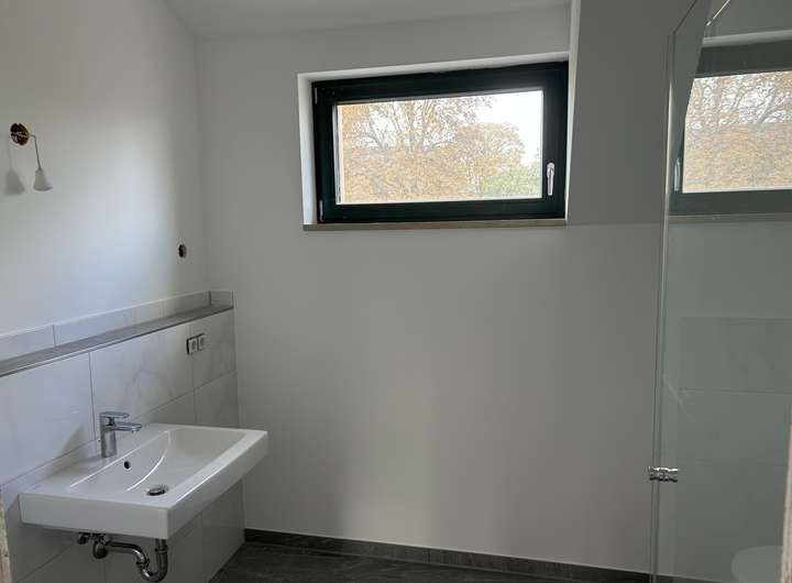 - Badzimmer im OG mit begehbarer Dusche Handtuchheizkörper u. Tageslicht