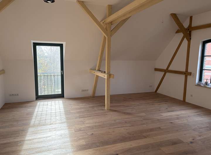 Willkommen in Ihrem neuen Zuhause! Dieses moderne Stadthaus bietet Ihnen auf großzügigen 135m² Wohnfläche alles, was das Herz begehrt. Mit insgesamt 5 Zimmern verteilt auf 2 Etagen, ist dieses Objekt ideal für Familien oder Paare, die Wert auf Raum, Komfort und Historie legen. Denn diese Immobilie gehört zu einem denkmalgeschützten Dreiseitenhof, der vor über 120 Jahren errichtet wurde. Das Ensemble steht auf einem ca. 2000qm großen Grundstück mit einem Haupthaus und einem L-förmigen Scheunenbau. In dem kleinen Teil der Scheunenanlage entlang der Straße An der Weide entstehen zwei Stadthäuser, deren Haus 1 Anfang 2026 bezugsfertig sein wird.