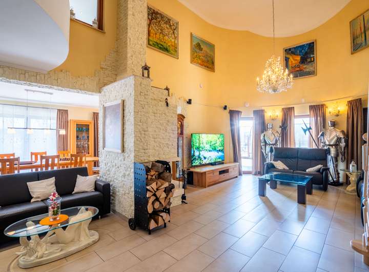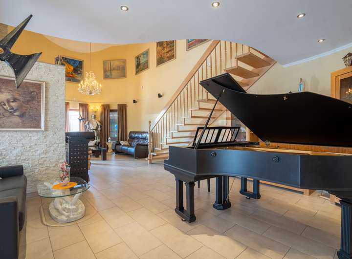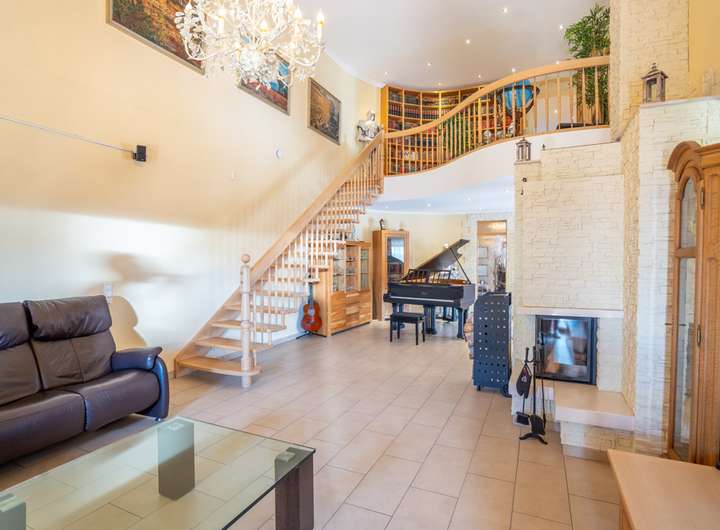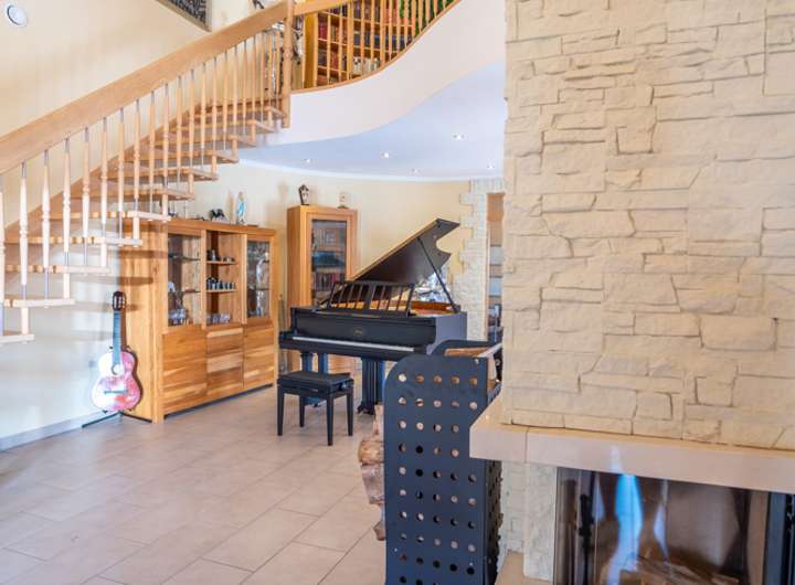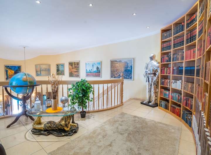 Hier verbringen Sie gemütliche Abende am Kamin, dem Piano oder der Bibliothek in der Galerie im Obergeschoss, welche einen herrlichen Blick in den Wohnbereich bietet.