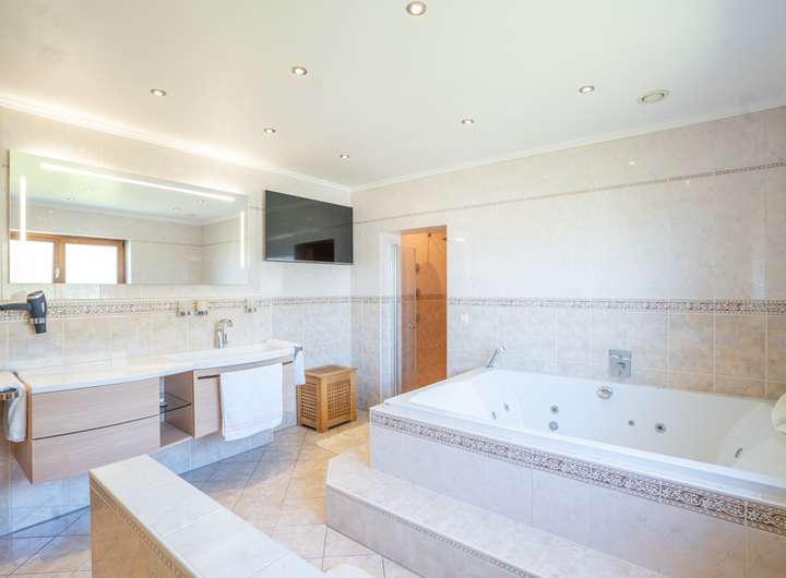 Die Sauna, ein weiteres Bad mit Dampfsauna und der Fitnessraum stehen für Ihr Wohlbefinden auf dieser Etage ebenfalls bereit.
