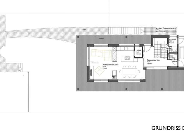 Ein- oder ZweifamilienhausBauklasse I und IIBebauungsdichte: 30 %Bauweise: offen oder gekuppeltBaufluchtlinie: 5 m von der vorderen GrundgrenzeMax. 2 Wohneinheiten pro Grundstück