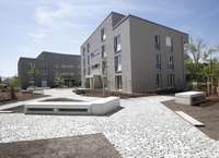Die Wohnanlage besteht aus 6 Mehrfamilienhäusern, als sozial gemischtes Quartier, die um den Nachbarschaftshof gruppiert sind. Dort findet man gemeinsame Garten- bzw. Parkanlage sowie Spielflächen mit angenehmer Aufenthaltsqualität. Blick- und Wegebeziehungen orientieren sich hin zu dieser gemeinsamen Mitte mit Spielfläche.