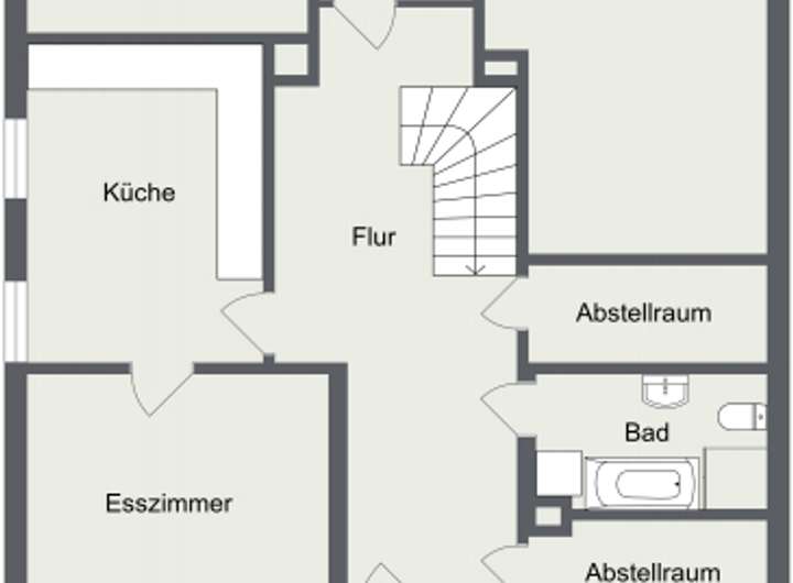 Das Erdgeschoss betreten Sie durch die Haustür an der Frontseite des Hauses und gelangen in den Eingangsbereich mit Zugang zu einem Zimmer, zum Wohnzimmer und zum Flur. Vom Flur haben Sie Zutritt zur Küche mit anschließendem Esszimmer, zum Badezimmer, zu zwei Abstellräumen und zur Treppe in das Obergeschoss. Wenn Sie aus der Hintertür treten, liegt zur Linken der Heizungsraum in dem die Ölheizung aus dem Jahr 1977 untergebracht ist.