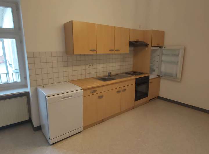 Im monatlichen Mietpreis von 1500,- Euro sind die Nutzung der Küchenzeile und der KFZ-Stellplatz im Hof inklusive.