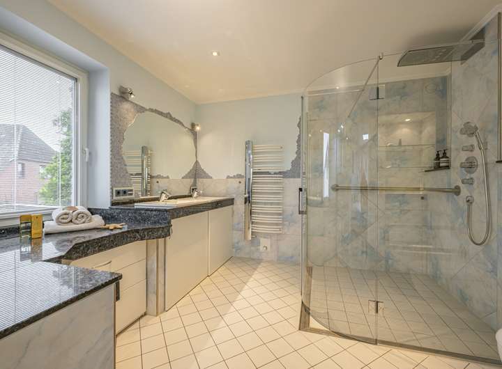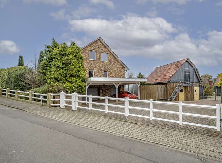 Abgerundet wird das Angebot durch insgesamt zwei Garagenstellplätze und weitere Carportstellplätze. Darüber hinaus finden Sie in einem Nebengebäude nicht nur zusätzlichen Stauraum, sondern auch eine PV-Anlage und eine Luft-Luft-Wärmepumpe, die den energetischen Standard des Energieausweises mit der Energieeffizienzklasse "A" abbilden. Geeignet ist die Immobilie für zwei Generationen unter einem Dach oder eine große Familie. Entscheiden Sie, welches Wohnkonzept Sie in dieser außergewöhnlichen Immobilie umsetzen möchten.