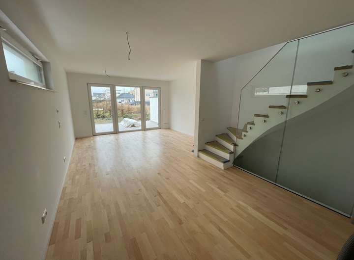 Die schöne dreistöckige Doppelhaushälfte (Baujahr 2024) überzeugt durch eine gehobene Innenausstattung und lichtdurchflutetem Ambiente. Das Objekt besteht aus vier attraktiven Zimmern, einem Badezimmer sowie einem WC für Gäste. Durch die beiden Auto-Stellplätze, der sich direkt am Haus befinden, können Sie Ihre Wocheneinkäufe entspannt in die bereits vorhandene, vollausgestattete Einbauküche tragen. Ebenfalls komfortabel ist der Kellerraum, der Stauraum für Gegenstände bietet, aber auch als vollwertiges Arbeitszimmer nutzbar ist. Eine hochwertige Terrasse in Ausrichtung West lädt zum Verweilen an der frischen Luft im Grünen ein. Warmwasser und Fußbodenheizung wird durch eine effiziente Wärmepumpe gesteuert. Das Objekt wurde nach Standard KFW Effizienzhaus (KFW 55) errichtet. Die Miete für das hier angebotene Haus (Erstbezug) liegt bei monatlich 2.130 Euro. Einzug ist nach Absprache möglich.